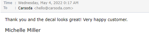 Thank you carsoda.com for making my car so cute!~Jessica from CA.