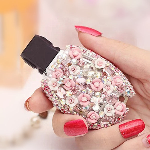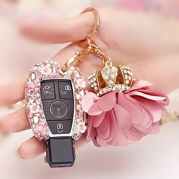 Mercedes Benz Pink Bling Car Key Holder with Rhinestones and flowers