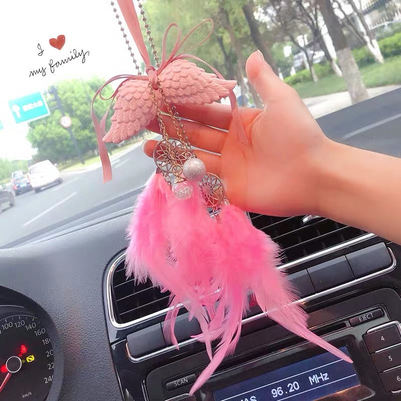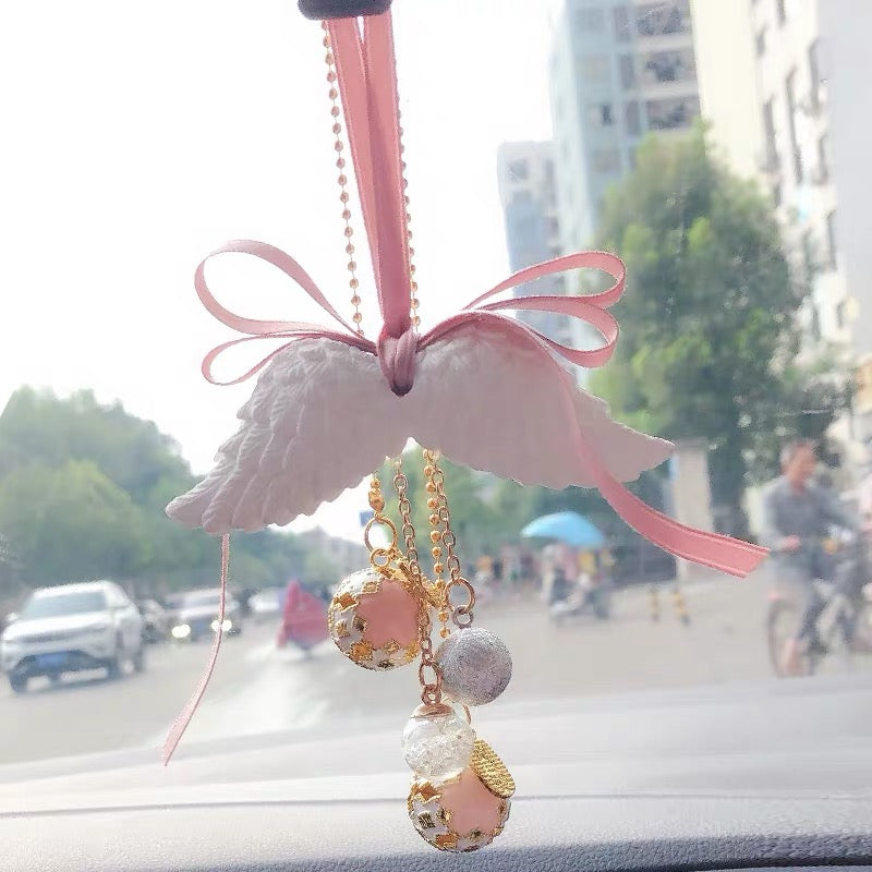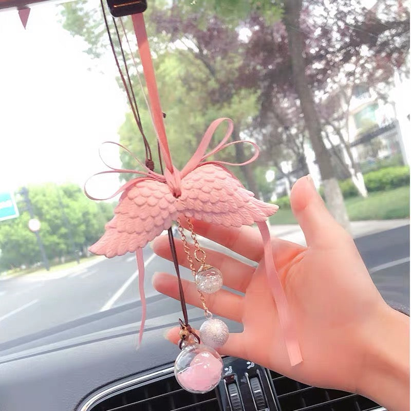 Angel wings Bling Car Charm Rear View Pendant with Fur or Bell