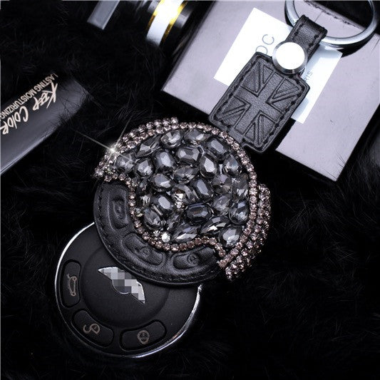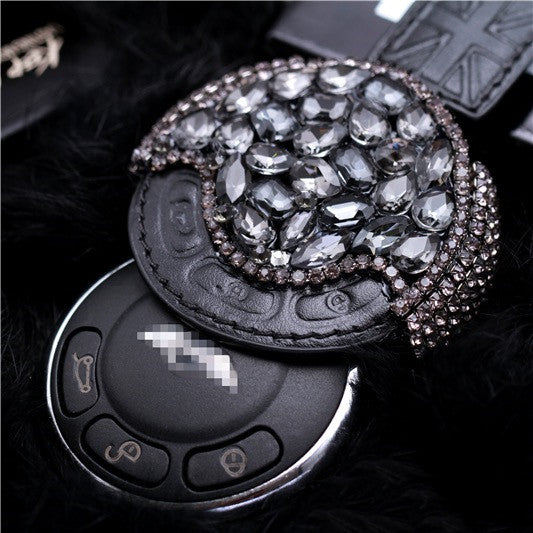 Bedazzled Bling BMW Mini F54 F55 R60 F60 Key Leather Case - Black Rhinestones