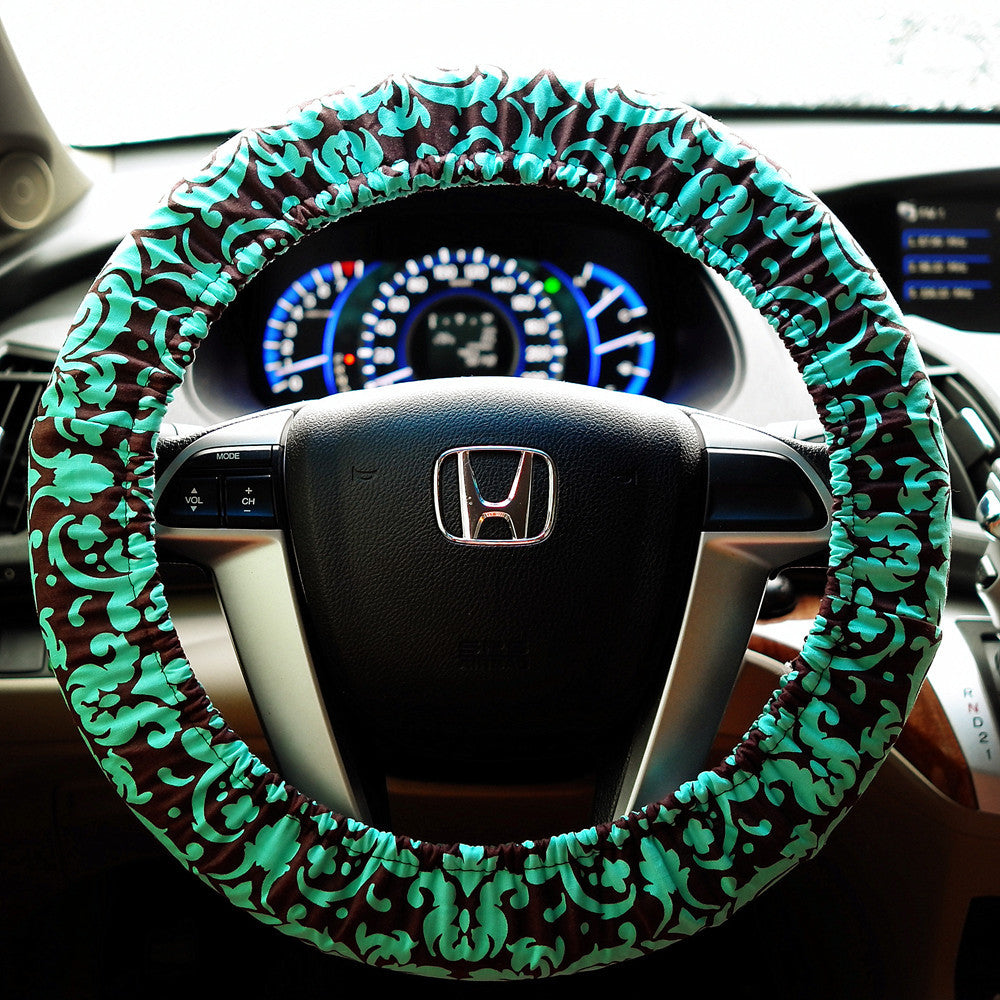 This listing is one teal damask steering wheel cover which fits 14'-15' steering wheel (toyota, honda, kia, mini cooper, jeep, vw beetles. vw passat and most brands).