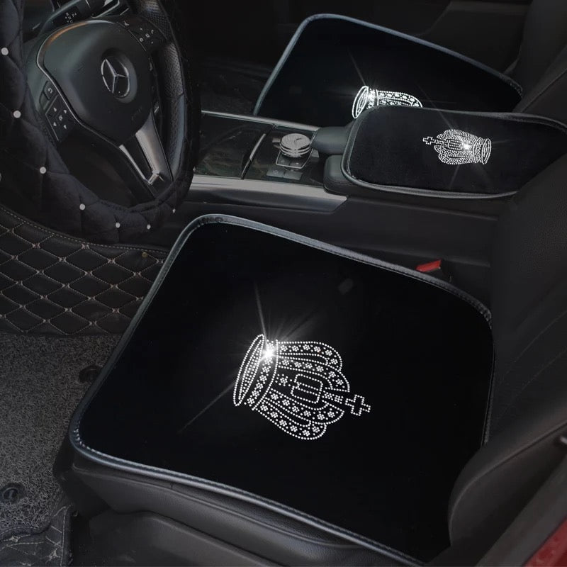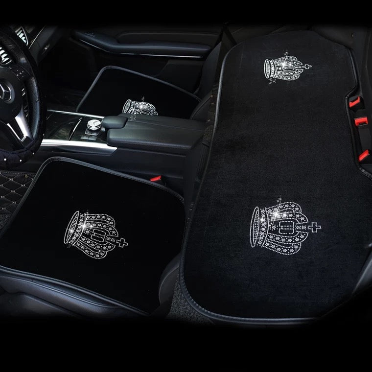 Black Velvet Car Seat cover with bling Crown For Winter.