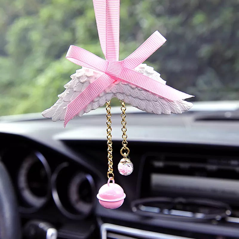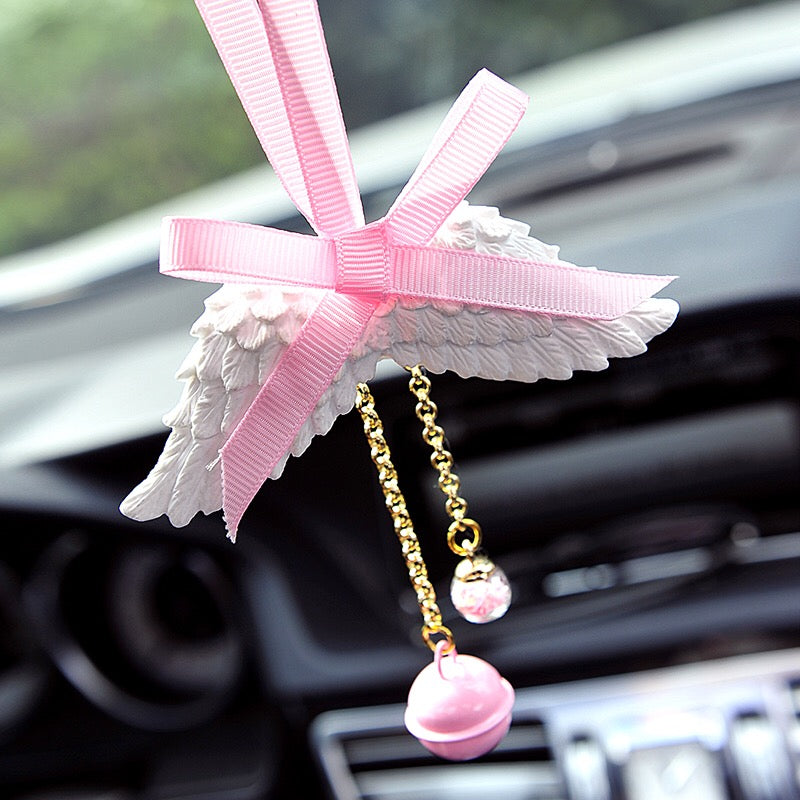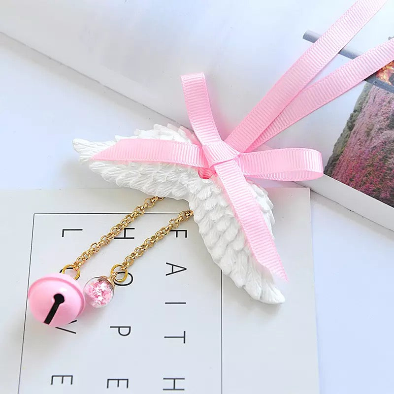 Bling Mirror Charm - Angel Wing and Pink bow Ornaments Pendant