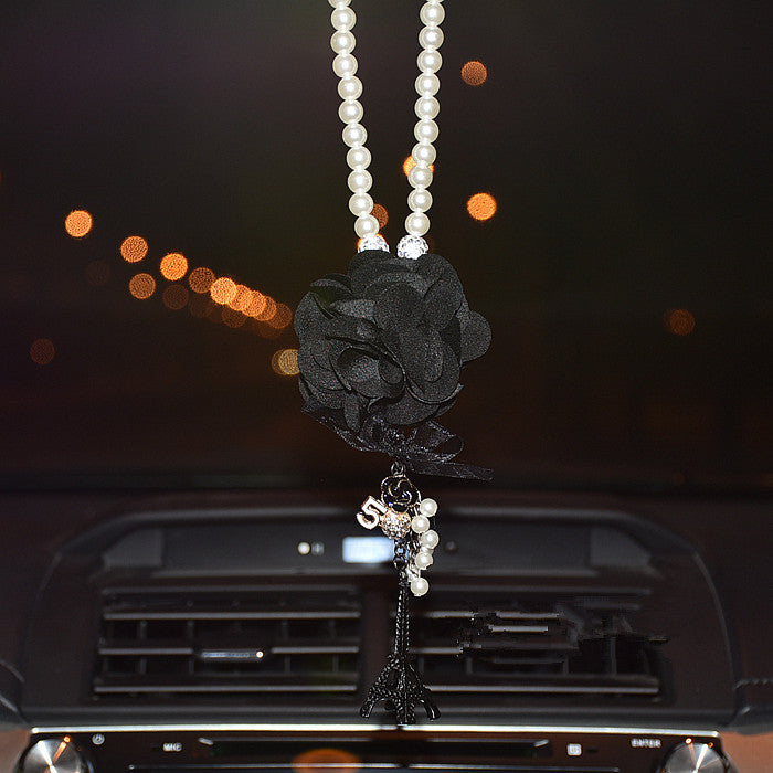 Car Mirror Charm-Flower and Eiffel Towel Rear View Mirror Pendant