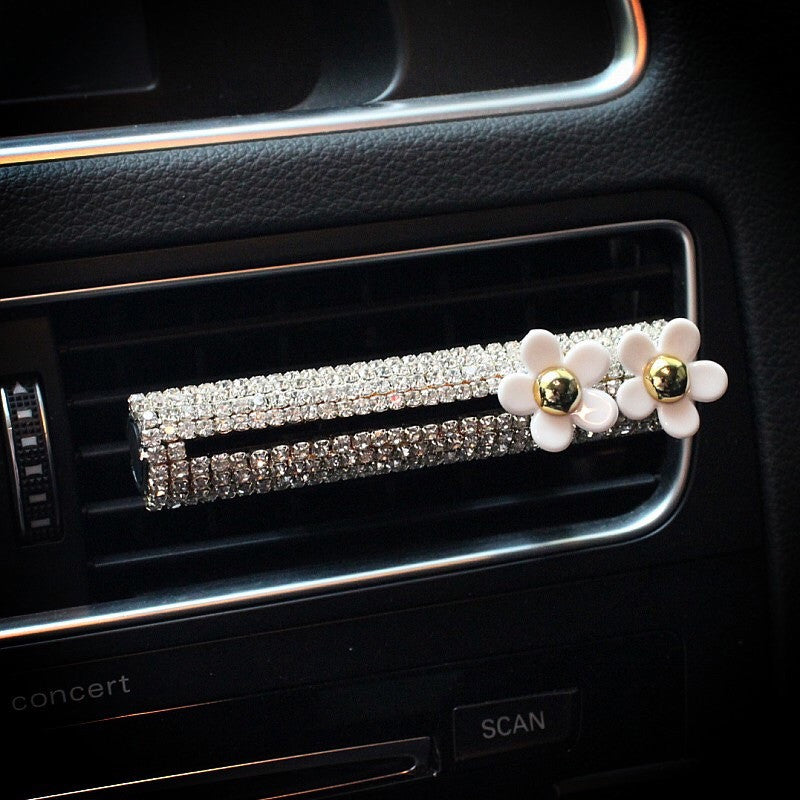 Daisy Car Air Vent Decoration with Rhinestones and Freshener