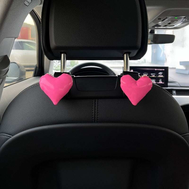 Hot Pink Heart Car Seat Hangers - Cute Car Decoration Hooks great for barbie lover