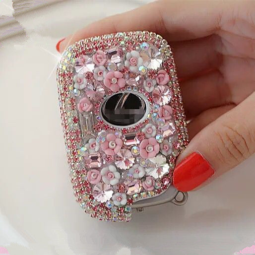 Pink Bling Car Key fob Holder with Rhinestones and flowers for Lexus ES240 RX350 270 IS250 GS300
