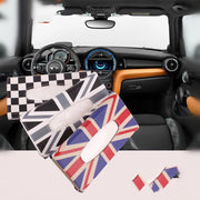 Mini Cooper Sun Visor Tissue Holder Soft Box with Union Jack Checkers rainbow patterns