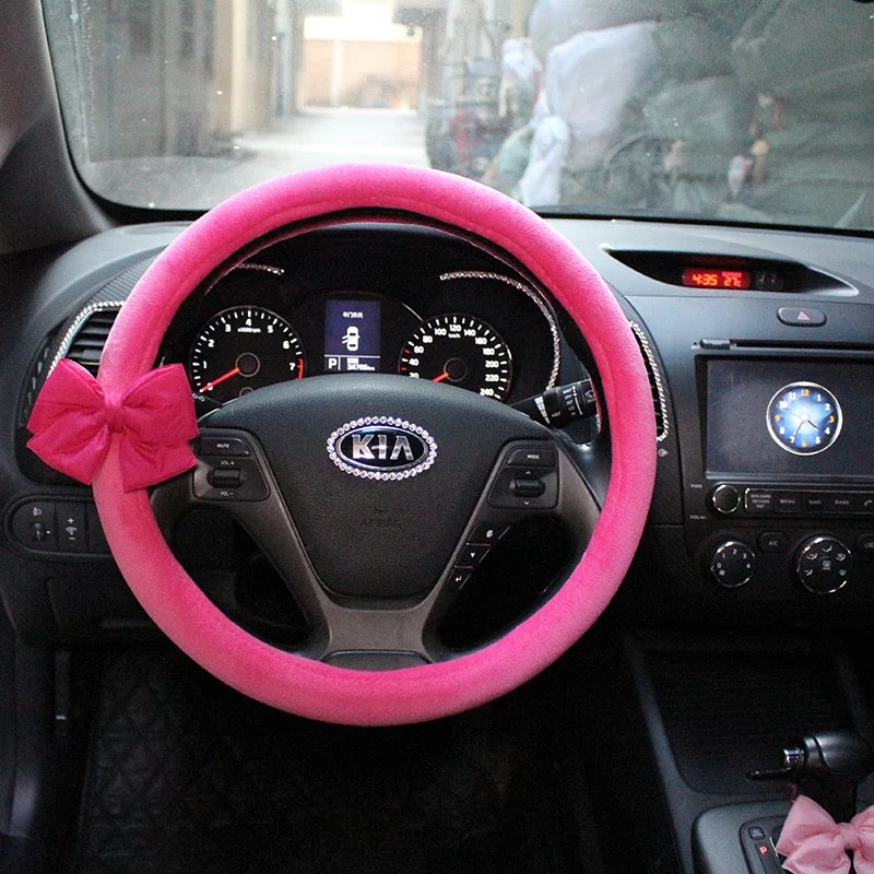 Girly girls everywhere, this steering wheel cover is for you. Bow and pink, what could be more girly? If you have a white car, or if you just want to brighten up your car, this steering wheel cover will look amazing. In fashion, white is a luxurious, vacation-style color that makes people feel chic and casual. This is also a great gift option for a mom who has just had a baby girl, a new bride or any girl who loves pink. Bring a little bit of brightness and sunshine into your life, or a friend’s life by decorating your car with this super cute pink bling steering wheel cover. Fits tightly to 14''-15" steering wheels and pleasant to the touch. Not sure if your steering wheel is the default size 14''-15''? Check out this sizechart.