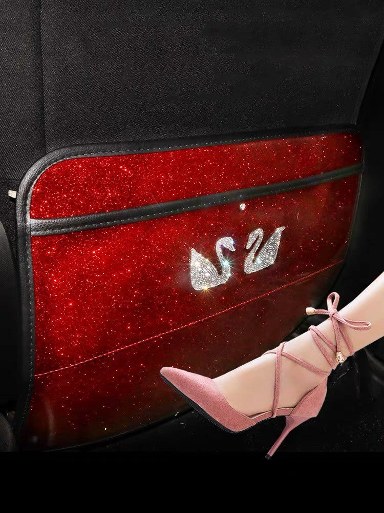 Red Car Seat Back Anti-kick Mat with Bling Swan