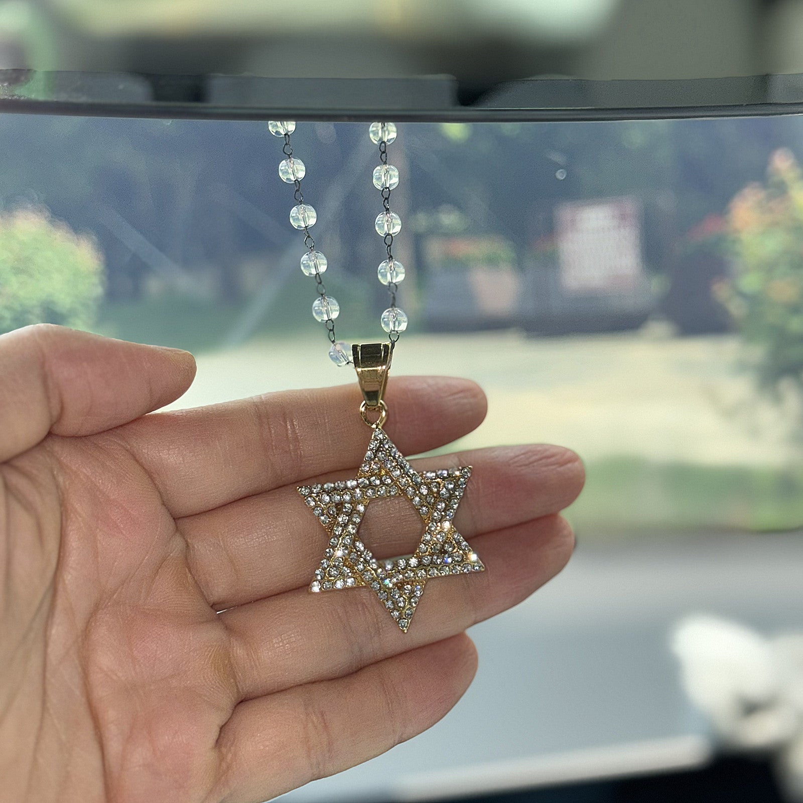 Star of David Rhinestone Pendant for Car Interior Rearview Mirror