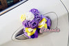 What happens when you combine flowers and hearts? You get a heart shaped bouquet of roses. These just married decorations for car doors are bold and they make a statement. Your wedding day will be unique and memorable with this bouquet. Check out the cool effect on some of the roses, they look sparkling and glittery. The thick ribbon on this decoration make everything look plush and opulent, so if your wedding is important to you, this is a great accessory to have. Purple, yellow and white look great together, and if you are a girly girl who loves these colors, get these now!